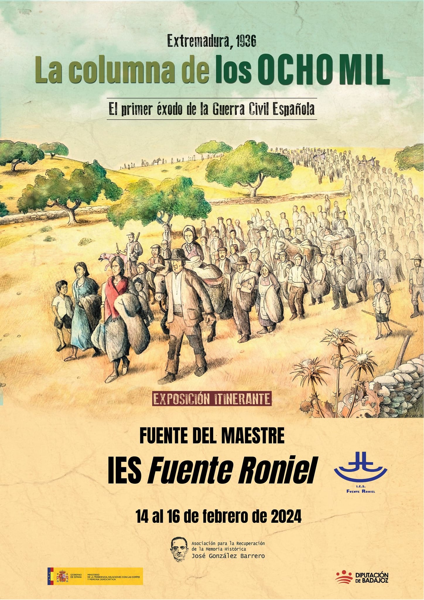 El IES “Fuente Roniel” de Fuente del Maestre acogerá la exposición itinerante «La Columna de los 8000. El primer éxodo de la Guerra Civil española», del 14 al 16 de febrero, en el Salón de Usos Múltiples.