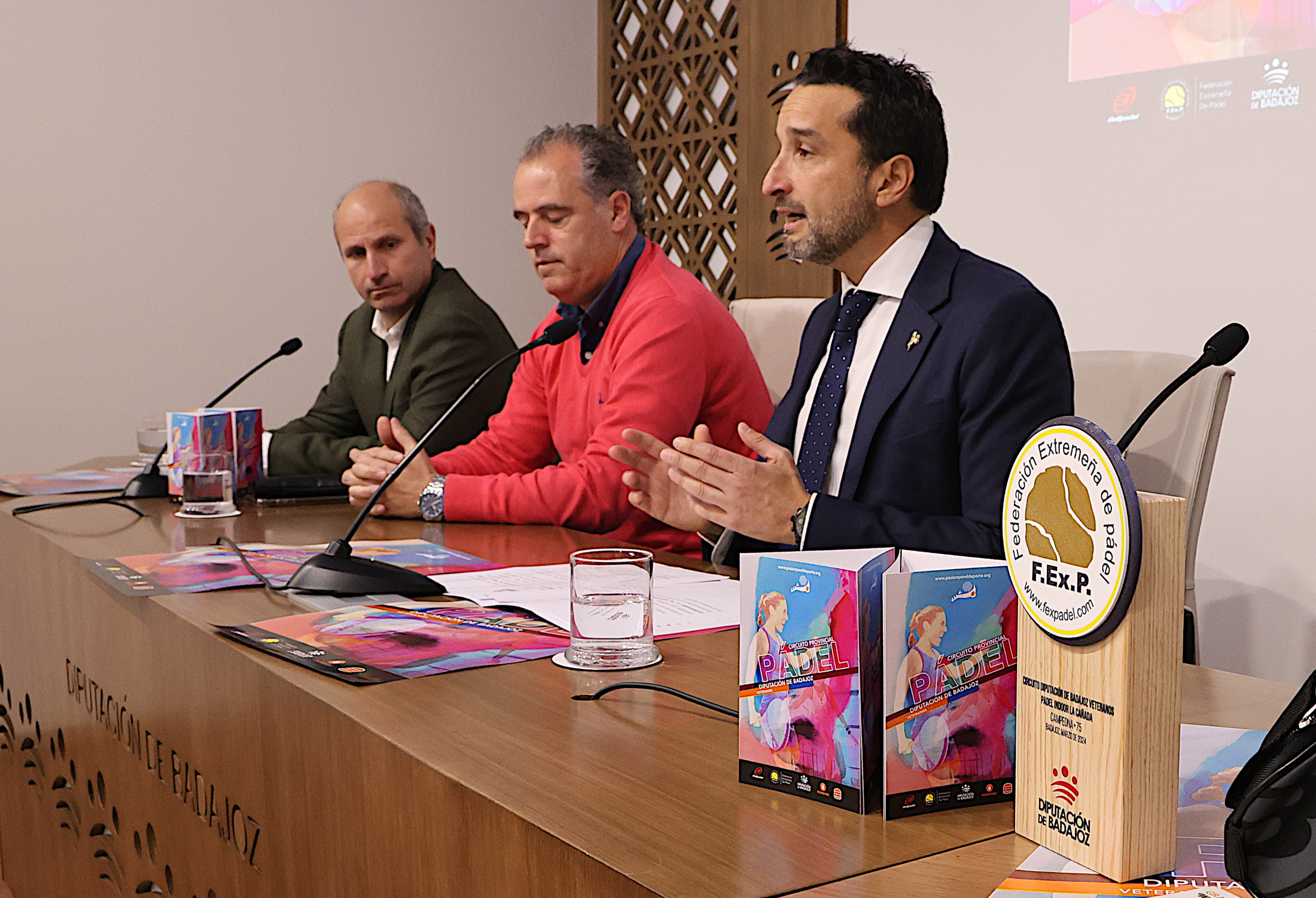 La sala de prensa de la Diputación de Badajoz ha acogido la presentación de un nuevo circuito deportivo, en esta ocasión el Provincial de Pádel en su primera edición. Para Ricardo Cabezas, diputado provincial de Cultura, Deportes y Juventud, “este es un circuito que,junto a los de Orientación y Ajedrez, amplían la oferta de nuestro Plan de Dinamización Deportiva de la Diputación de Badajoz”.