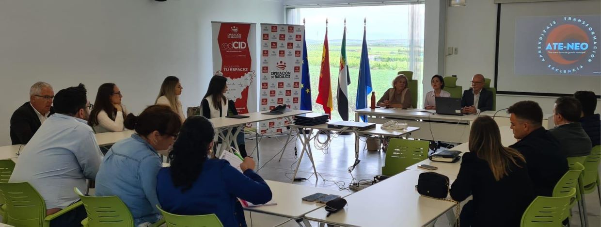 La vicepresidenta 1ª y diputada del Área de Cooperación Municipal de la Diputación de Badajoz, Raquel del Puerto Carrasco, presentó en el CID Municipios Centro de Calamonte, el ‘Proyecto ATE-NEO, una nueva forma de gestión municipal’. La jornada contó con la presencia de los máximos responsables de los municipios que forman parte de este proyecto piloto, alcaldes de los Ayuntamientos de Arroyo de San Serván, Castuera, Fuente del Maestre y Puebla de la Calzada, así como la alcaldesa del Ayuntamiento de Calamonte. Junto a ellos, también asistieron la directora del Área de Cooperación Municipal y el responsable y personal técnico del nuevo Departamento de Calidad y Optimización en la Prestación de los Servicios Públicos Municipales adscrito a este Área.
