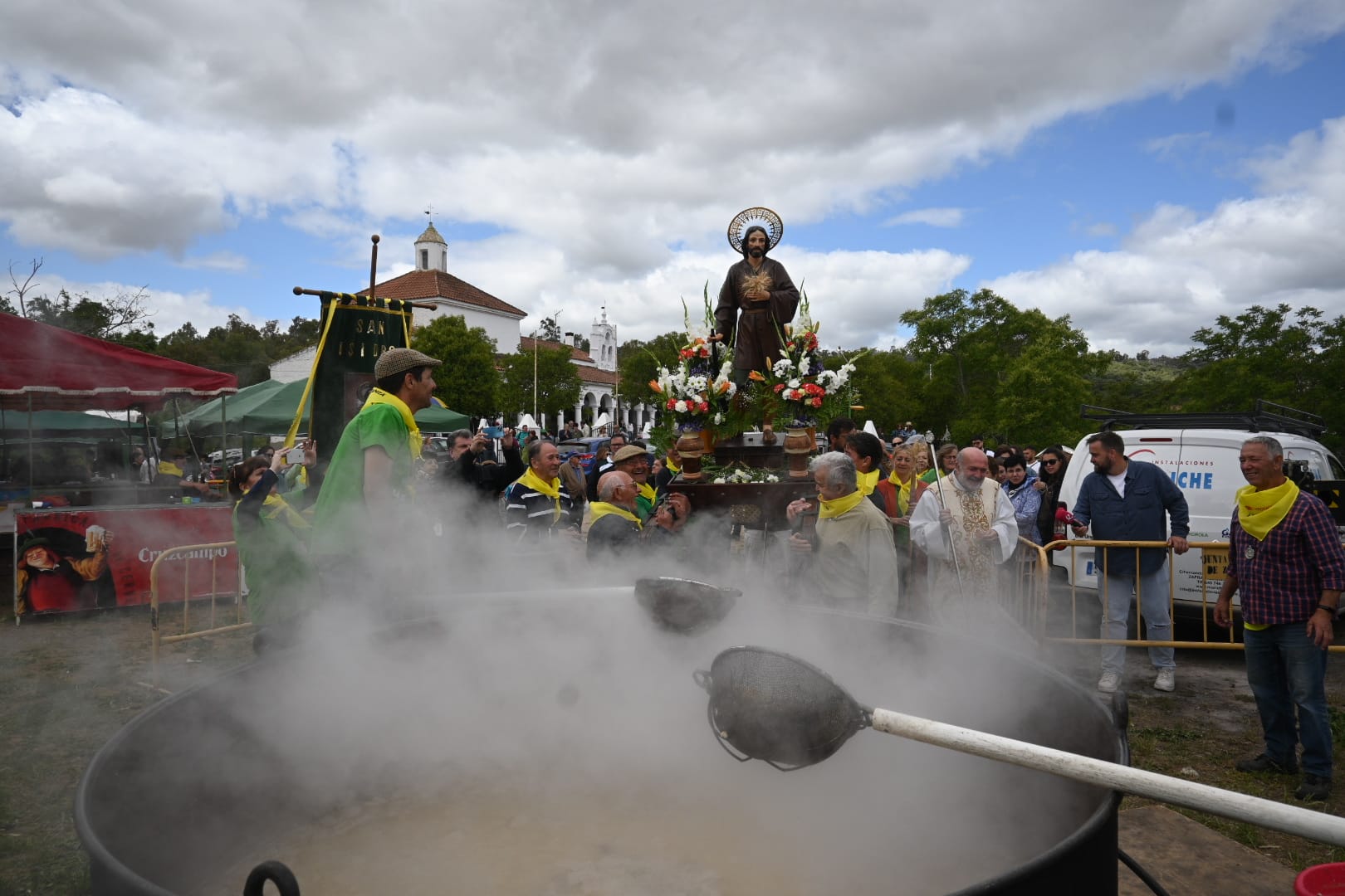 El programa de actos comenzó por la mañana con la concentración de los cocineros y los preparativos y elaboración de los garbanzos. Tras la misa en honor a San Isidro, oficiada por el párroco José Ángel Losada, ha tenido lugar la procesión por los aledaños de la ermita, a los sones de la charanga ‘Los Pintores’. También se ha llevado a cabo los concursos de tortilla de patatas y gazpacho con una buena participación y juegos tradicionales para los más pequeños.