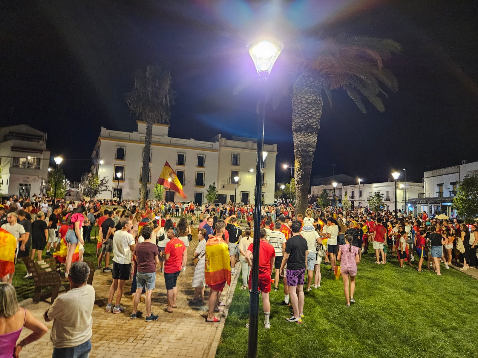 España se proclamó, este domingo 14 de julio, Campeona de la Eurocopa que durante este último mes se ha jugado en Alemania, y en Fuente del Maestre se celebró por todo lo alto con una fiesta que tuvo lugar en el Parque de la Constitución.