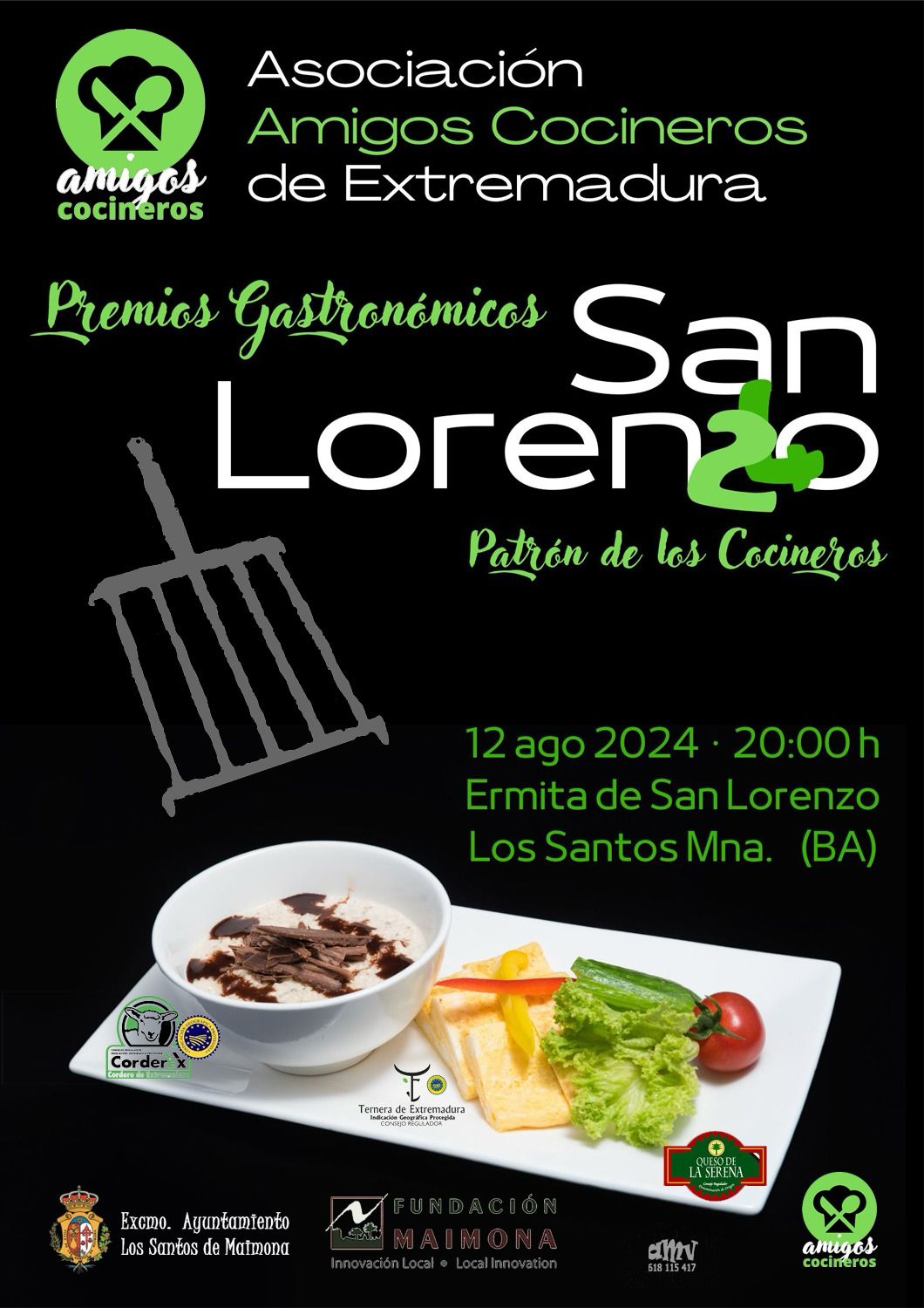 La Asociación de Amigos Cocineros de Extremadura celebrará el lunes, 12 de agosto, sus Premios Gastronómicos en Los Santos de Maimona. Para ello ha organizado a las 20 horas un acto en la ermita de su patrón San Lorenzo, que cada año se celebra su día el 10 de agosto.