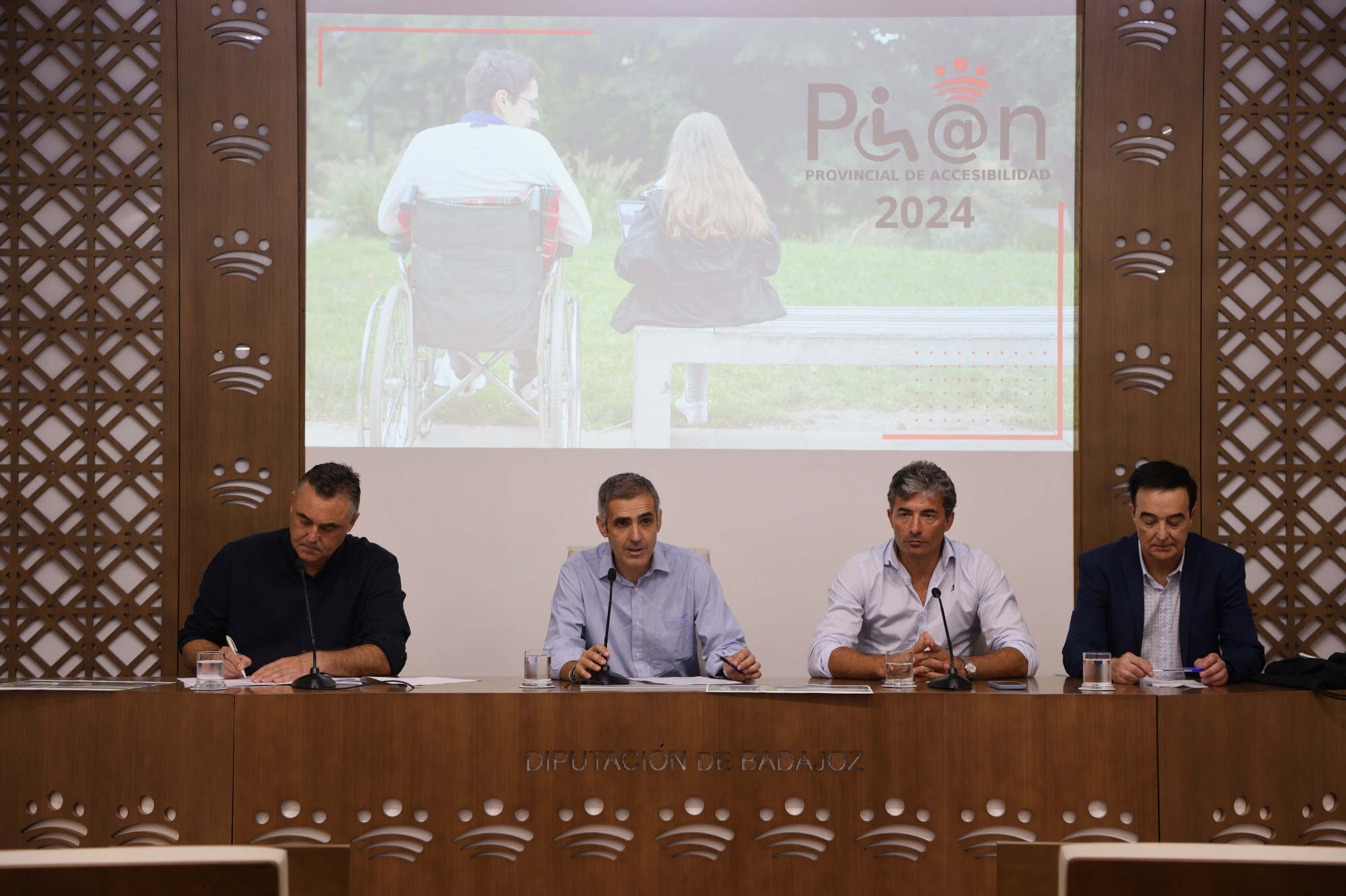 La presentación de este cuarto plan de accesibilidad fue realizada por Abel González, diputado de Infraestructuras, Movilidad y Ordenación del Territorio de la Diputación de Badajoz; José Carlos Cobos, director del Área; Jesús Gumiel, presidente de APAMEX; y Sebastián González, director gerente de Plena Inclusión.