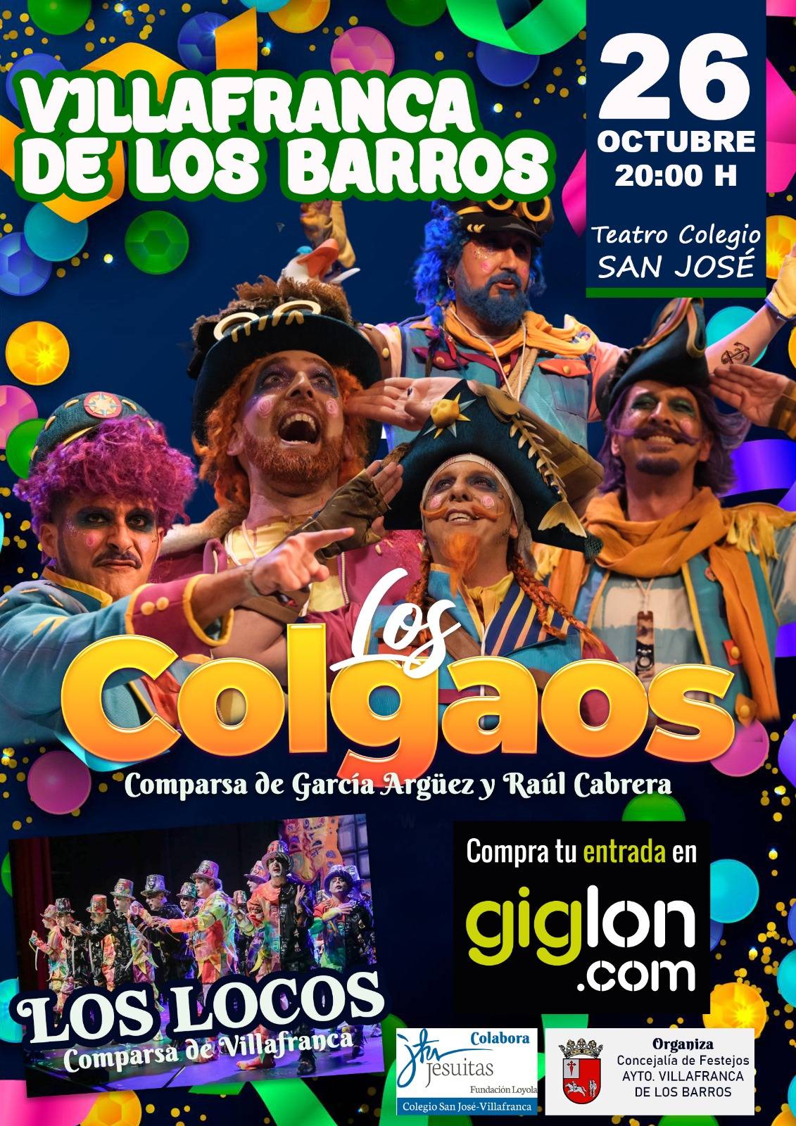 Villafranca de los Barros disfrutará la Noche Carnavalesca el próximo 26 de octubre, con la actuación de la comparsa Los Colgaos, ganadores del Segundo Premio en el COAC 2024, y “Los Locos”, comparsa de Villafranca de los Barros.