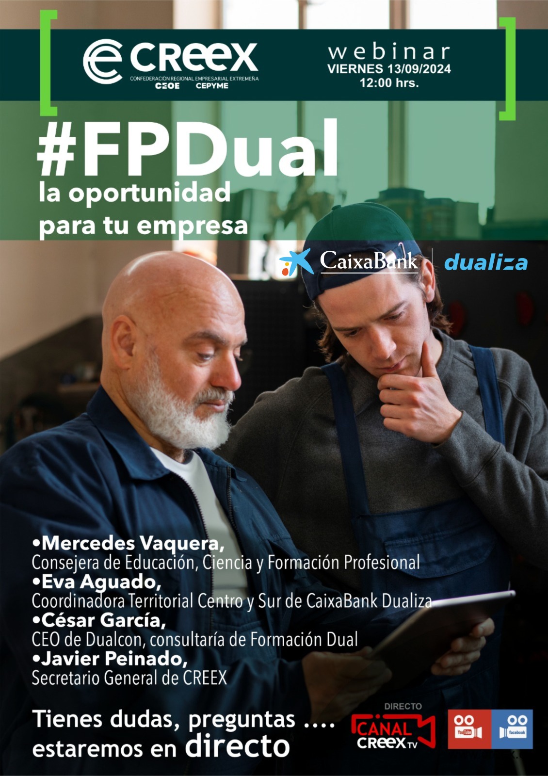 Además de Mercedes Vaquera, que expondrá cómo se adaptará en nuestra región la nueva ley de FP, contaremos con Eva Aguado, Coordinadora Territorial Centro y Sur de CaixaBank Dualiza, quien hablará del modelo que impulsa la entidad que representa; César García, CEO de Dualcon, consultora de Formación Dual, para dar las claves sobre cómo integrar el modelo Dual en las empresas, y Javier Peinado, Secretario General de la CREEX, quien hará la presentación del tema, moderará el debate y trasladará a los ponentes las dudas y preguntas que surjan.