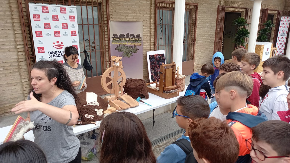 Una jornada de viernes, que también ha contado con Talleres infantiles para los escolares de 6º de primaria del CEIP Pedro de Valencia de Zafra, dónde han podido conocer los distintos procesos por los que pasa la lana de las ovejas hasta convertirse en material textil.