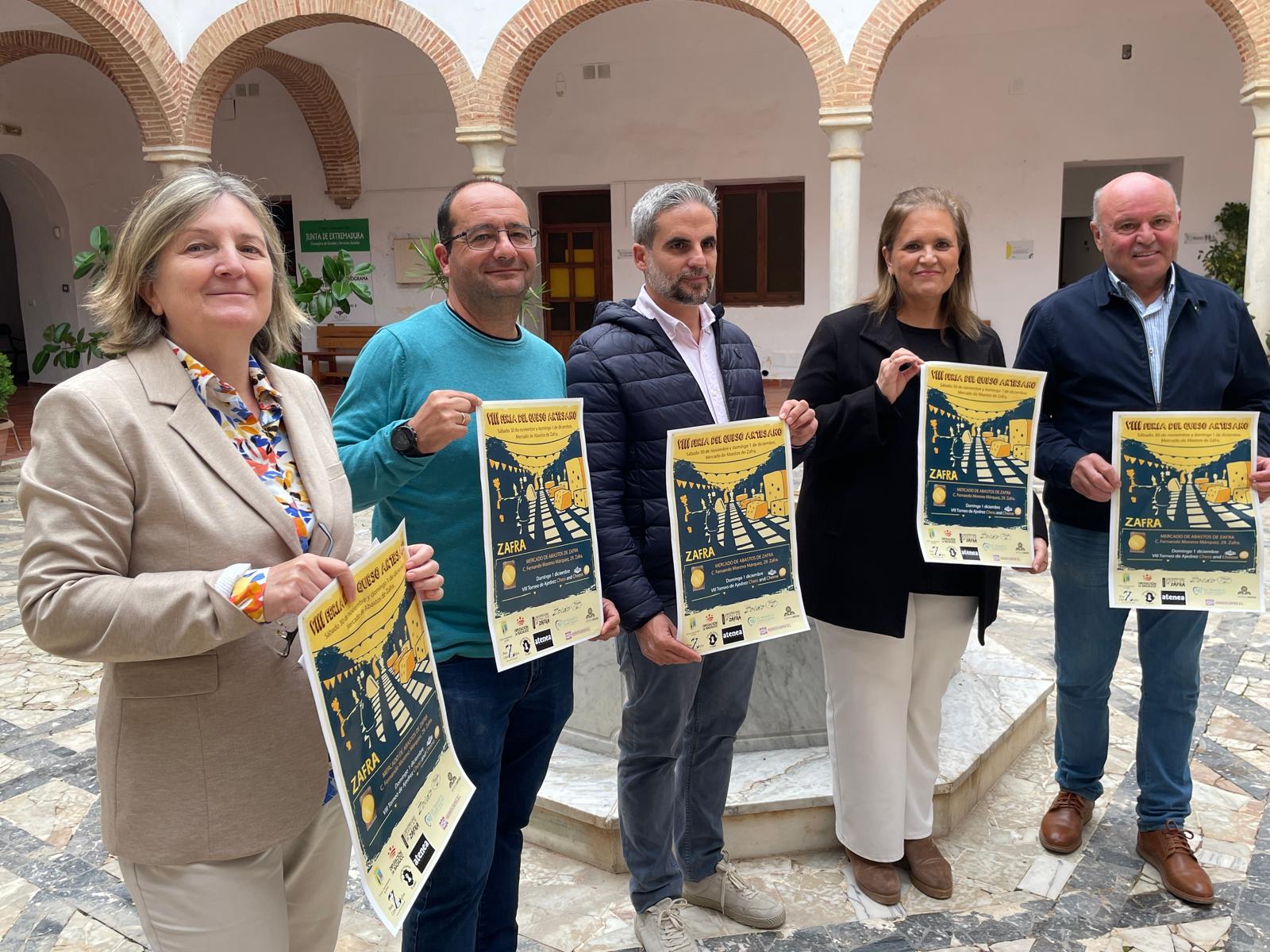 A la presentación han asistido la concejala de Industria, Comercio y Desarrollo Local, Eva Corchero; el concejal de Educación y Deportes, Javier Domingo Jaramillo; el quesero Juan Gabriel Santiago; la directora de la Universidad Popular de Zafra, Josefa Moreno; y el vocal de la Agrupación de Ajedrez Ruy López, Francisco Gragera.
