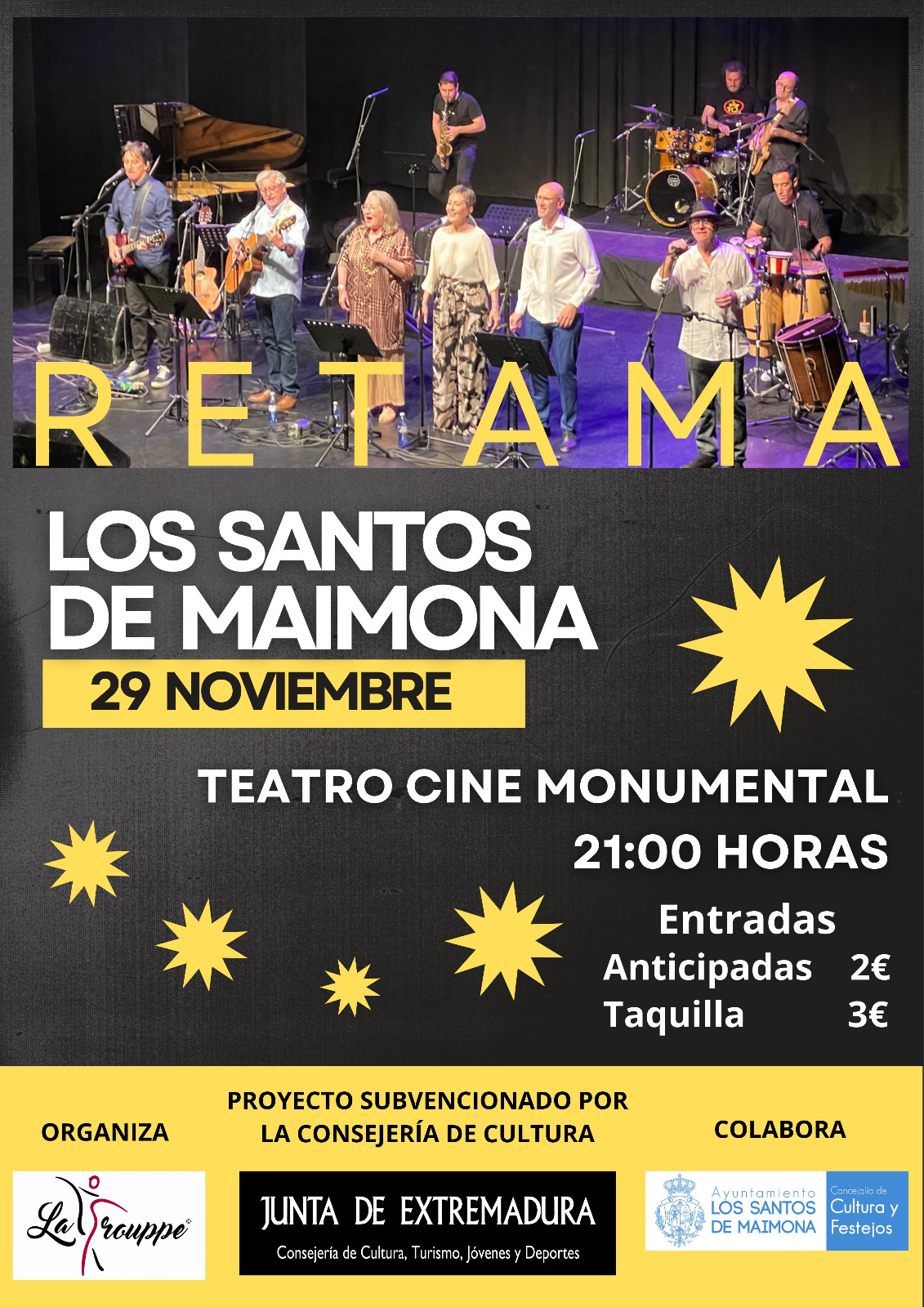 El concierto de Los Santos de Maimona está organizado por la asociación cultural La Trouppe, está subvencionado por la junta de Extremadura y cuenta con la colaboración del ayuntamiento de Los Santos de Maimona.