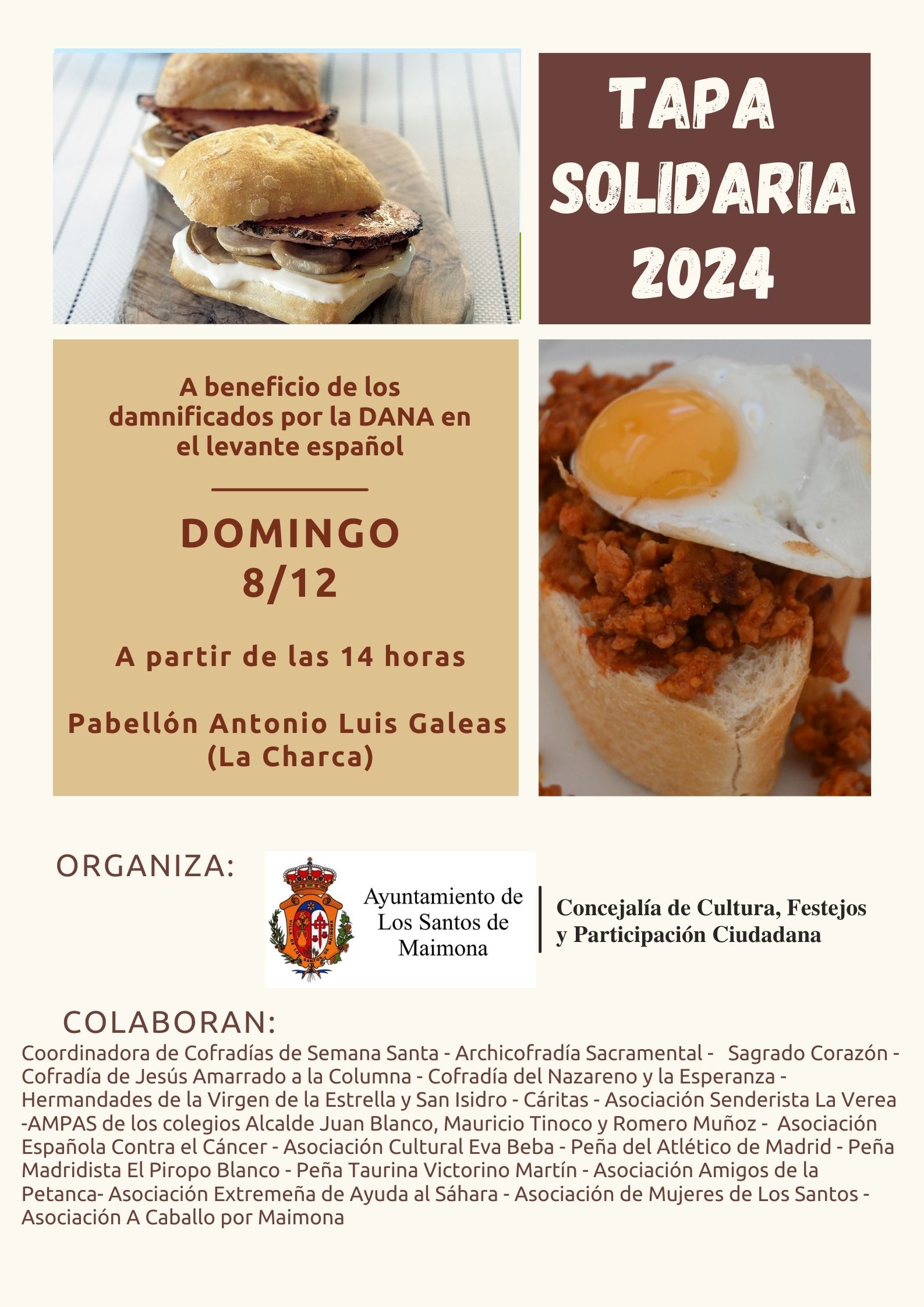 El Ayuntamiento de Los Santos de Maimona celebra este domingo, 8 de diciembre, la Tapa Solidaria a partir de las 14 horas en el pabellón Antonio Luis Galeas, en el barrio de La Charca.