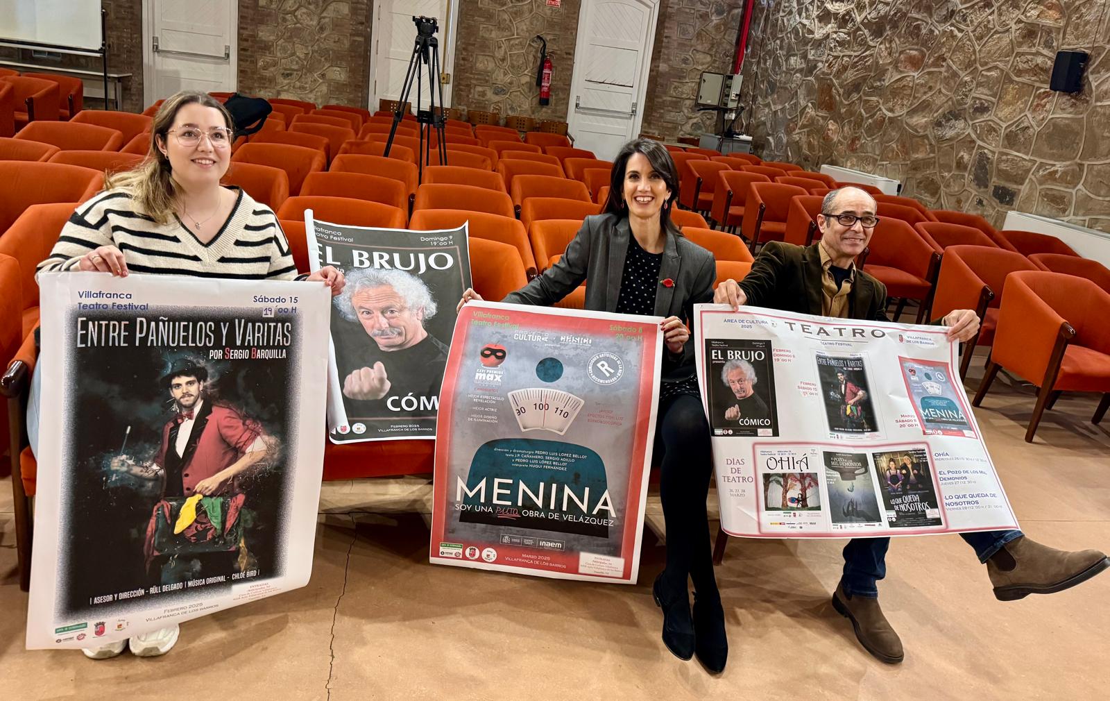 La concejala de Cultura de Villafranca de los Barros, Miriam Garcia Cabezas, y el coordinador del Área de Cultura, Fernando Clemente, han presentado en rueda de prensa este martes la programación teatral de los próximos que abrirá el domingo 9 de febrero con la obra ‘Cómico’ del reconocido actor Rafael Álvarez El Brujo.