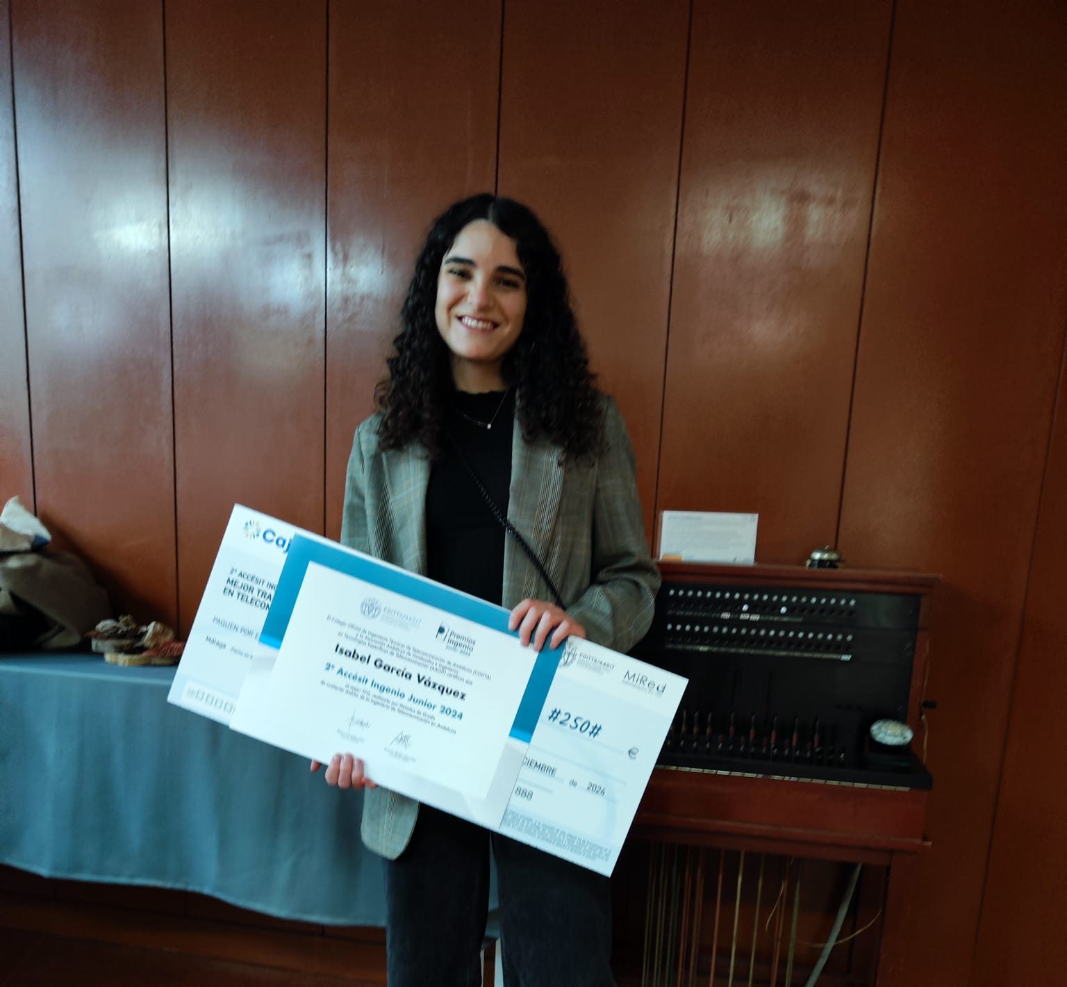 La joven Ingeniera en Tecnologías de Telecomunicaciones de Fuente del Maestre (Badajoz), Isabel García Vázquez , ha conseguido el tercer accésit en el “Premio Ingenio Junior 2024” que organiza el Colegio de Ingenieros de Telecomunicaciones de Andalucía, por su Trabajo de Fin de Grado “Diseño de Sistemas de Cosechado de Energía Electromagnética: Aplicación a Redes de Sensores.”
