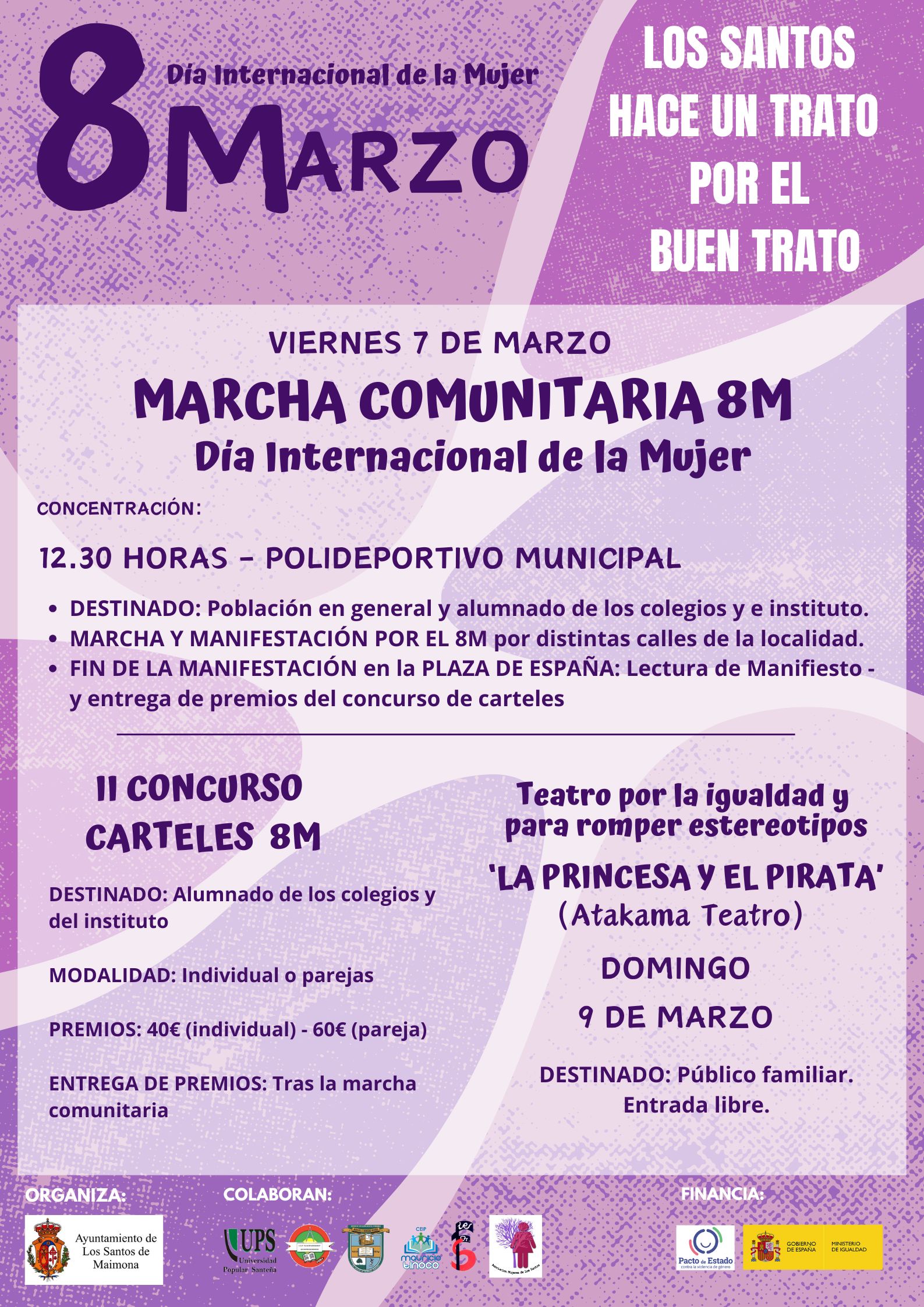 El Ayuntamiento de Los Santos de Maimona, a través de su Concejalía de Política Social e Igualdad, ha organizado distintas actividades para conmemorar el 8 de marzo, Día Internacional de la Mujer, acogidas al Plan de Estado contra la Violencia de Género del Ministerio de Igualdad.