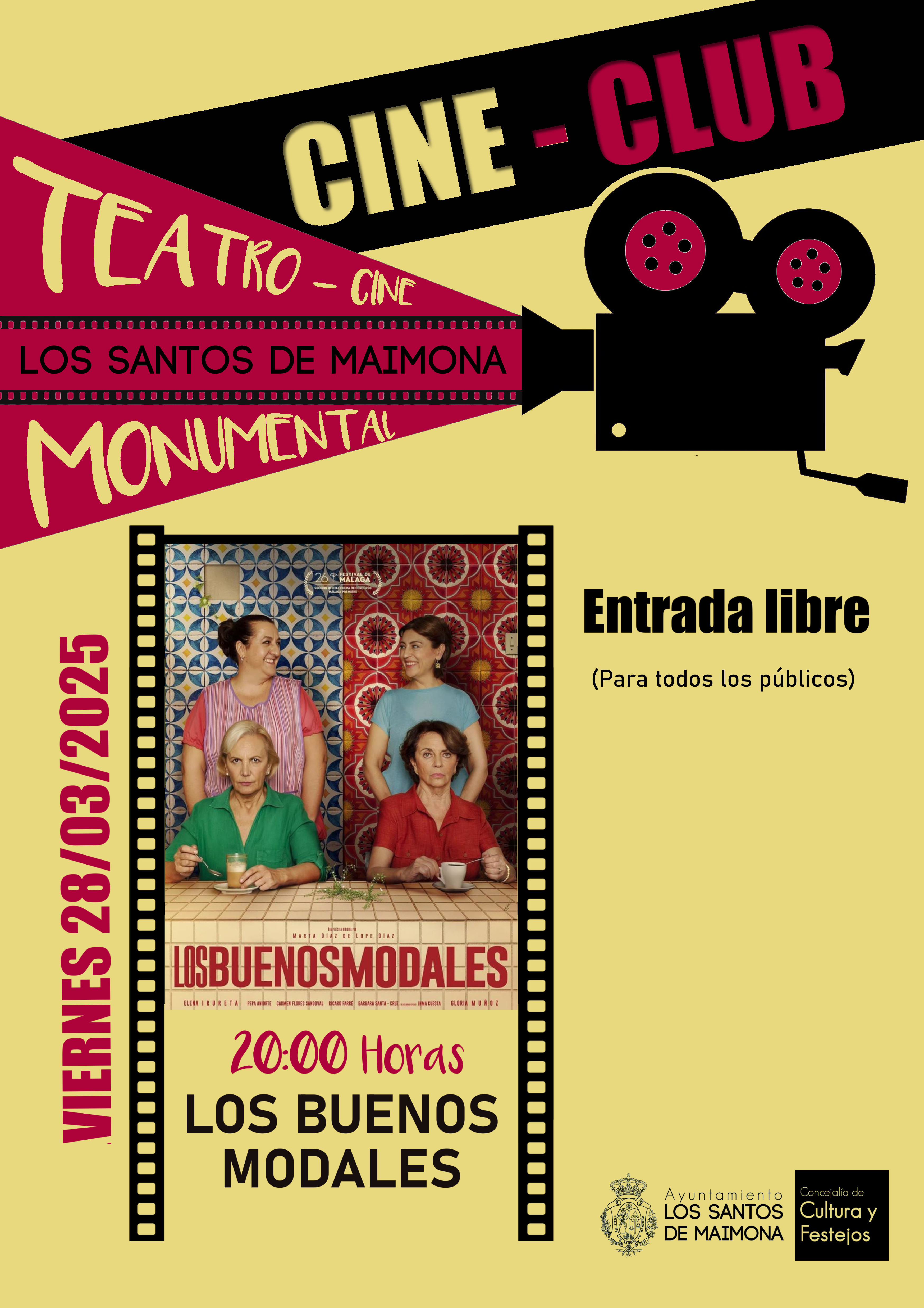 El Cineclub es una propuesta de la Concejalía de Cultura de del Ayuntamiento de Los Santos de Maimona. Esta temporada será clausurada el 4 de abril con la comedia ‘Ocho apellidos marroquís’.