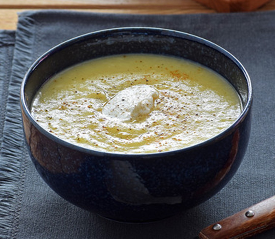 Posiblemente esté rica también fría, pero solo puedo recomendar tomar esta crema de puerros, patata y pera al azafrán caliente, con un buen pan o picatostes al lado. Si nos apetece también podemos servirla con algo de queso, preferiblemente uno curado recién rallado que aporte un buen contraste de sabor. Para una guarnición verde recomiendo brotes de berros o unos germinados