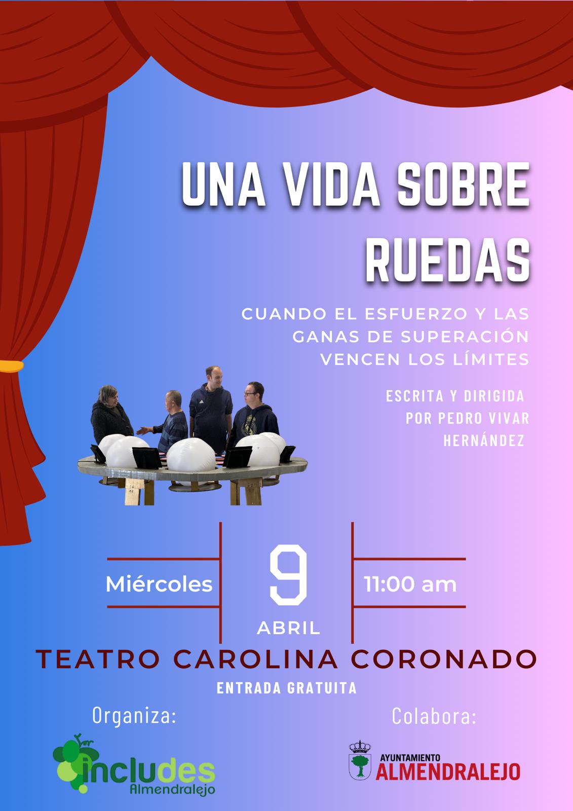 El próximo 9 de abril una obra inspiradora llegará al Teatro Carolina Coronado «Una vida sobre ruedas». A las 11:00 horas, el Teatro Carolina Coronado acogerá la representación de la obra «Una vida sobre ruedas», escrita y dirigida por Pedro Vivar Hernández. Se trata de una historia de superación que nos sumerge en la experiencia personal de su autor, una persona con discapacidad, que a través del teatro nos invita a reflexionar sobre los retos, logros y aprendizajes que han marcado su vida.