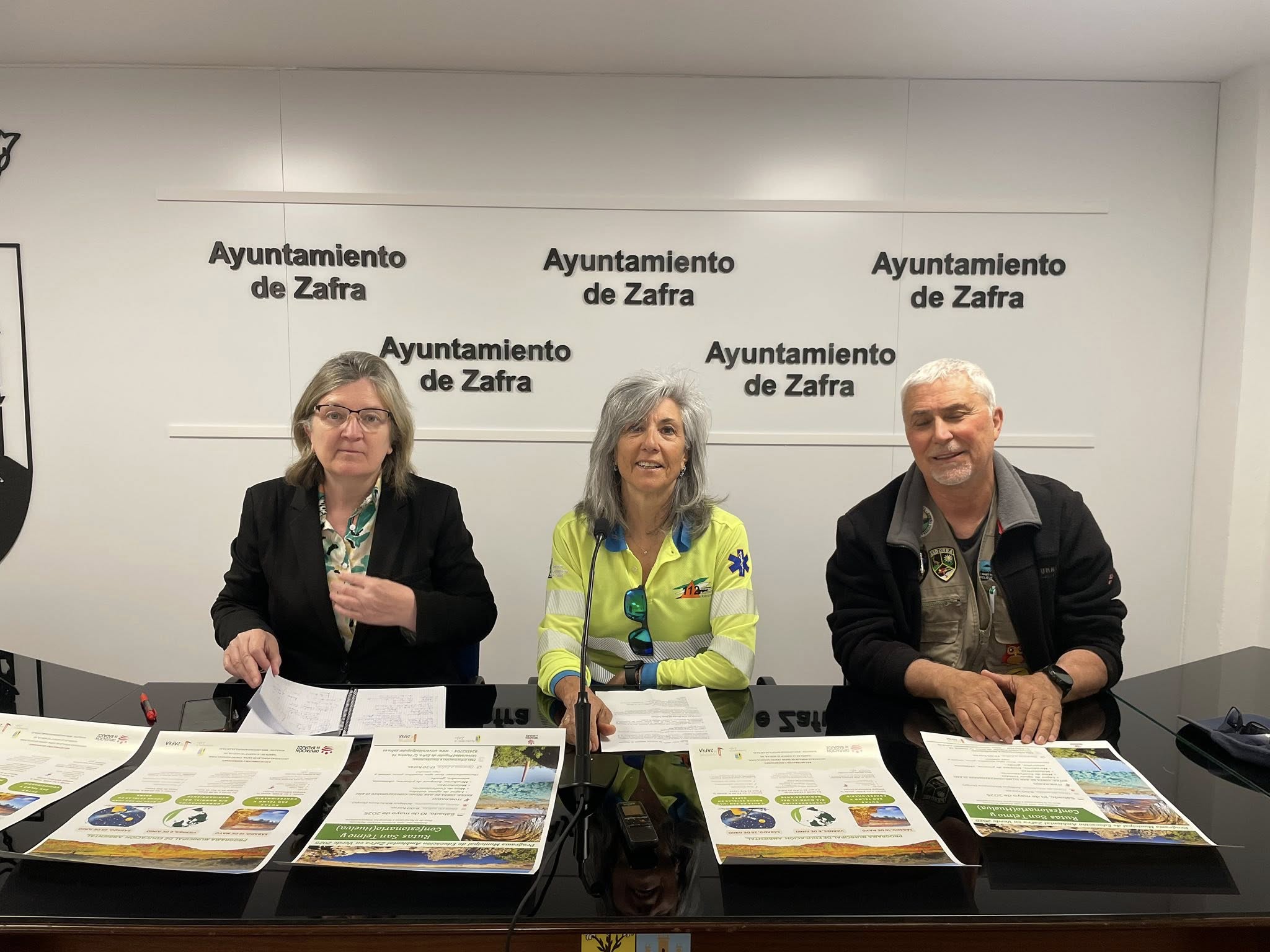 La concejala de Medio Ambiente del Ayuntamiento, María del Mar Solera; la directora de la Universidad Popular, Josefa Moreno y el guía de la Naturaleza, José Antonio Amador han dado a conocer el programa de actividades que se van a desarrollar en Zafra, actividades dirigidas a toda la ciudadanía que se encuentre interesada.