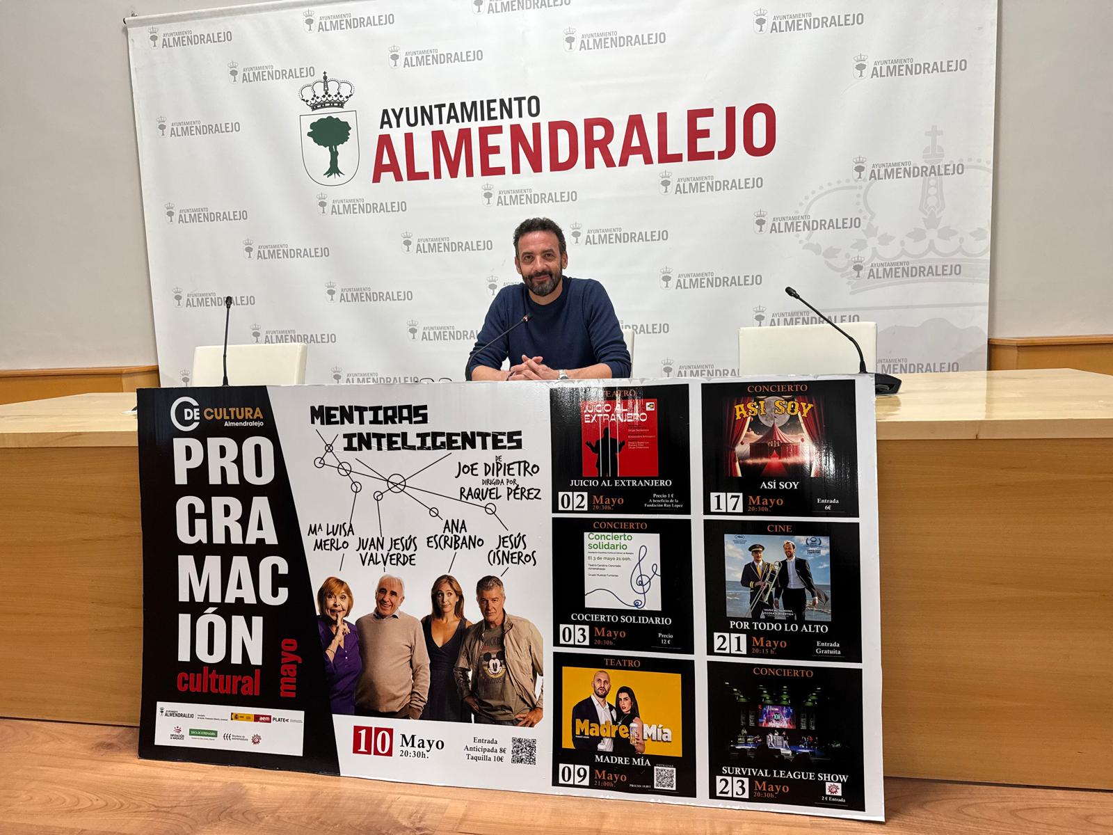 El concejal de Acción y Promoción Cultural de Almendralejo, Domingo Cruz, ha presentado este miércoles la programación cultural del mes de mayo en la localidad que incluye teatro, música y participación del tejido asociativo local.
