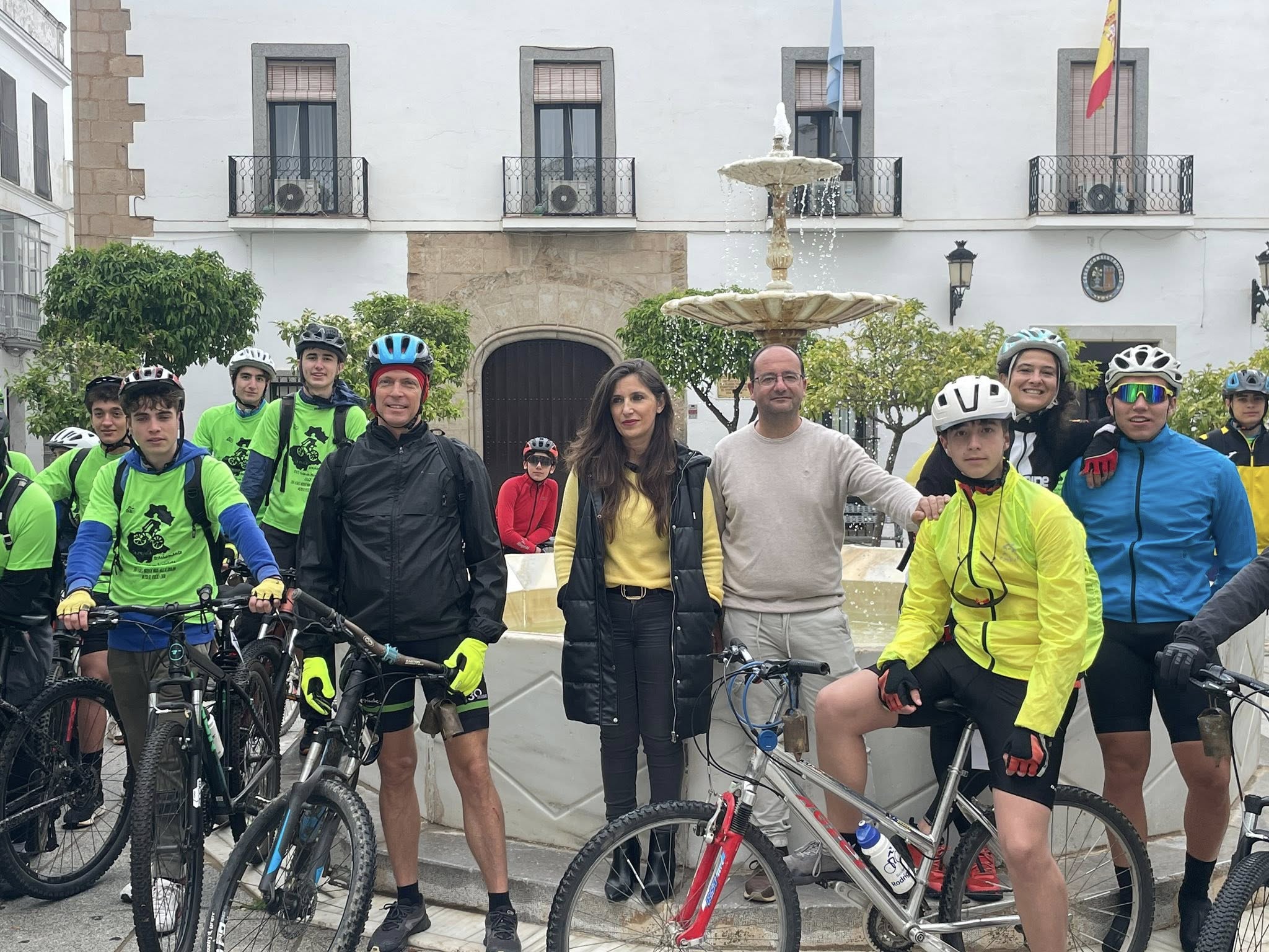 Unos 40 personas, entre alumnos y alumnas, profesores, monitores del Instituto de Educación Secundaria “Cristo del Rosario” de Zafra participan en la XVI Ruta en Bicicleta “La Escuela Trashumante”.