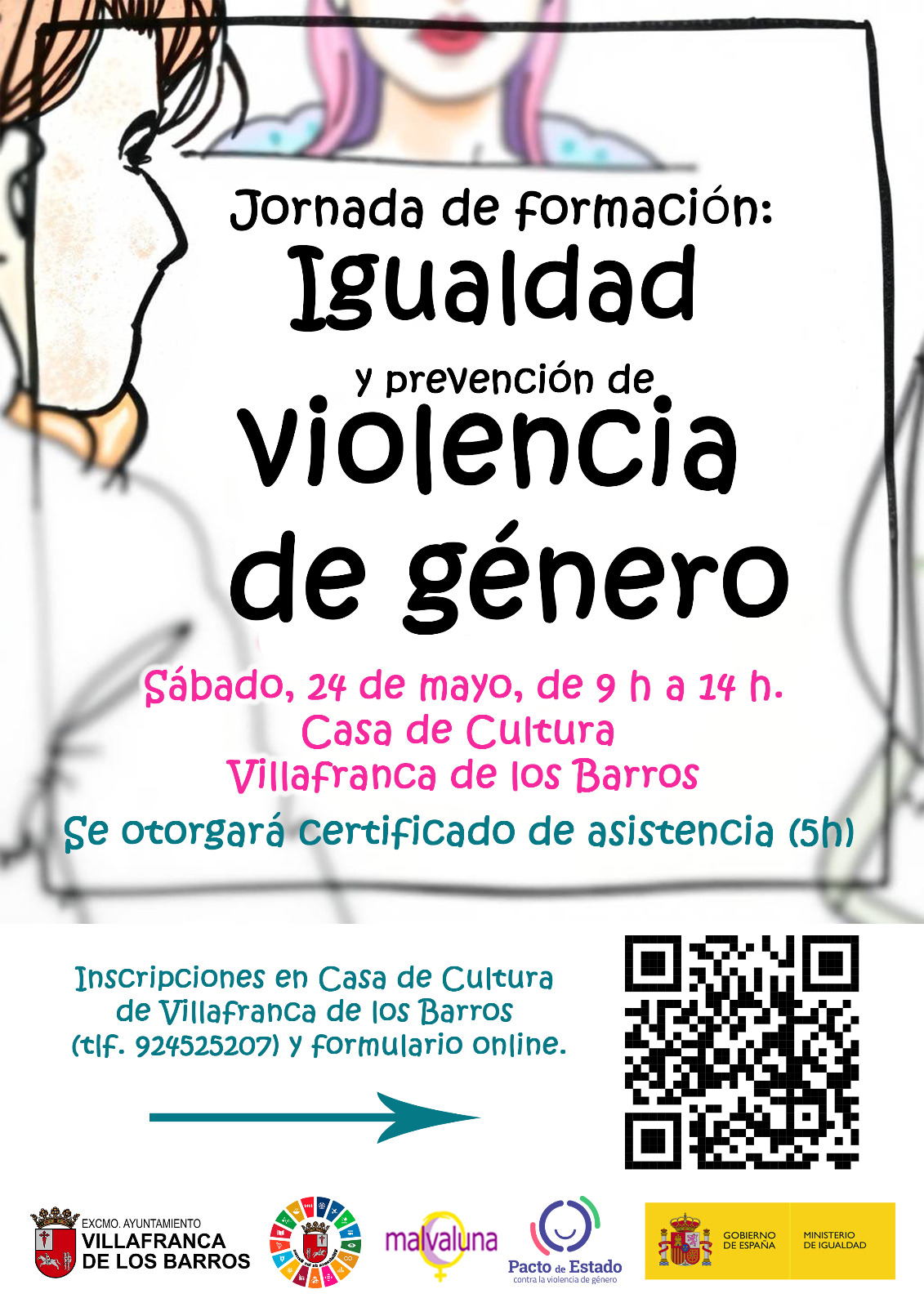 Para participar en la formación es necesario completar la inscripción gratuita bien en la Casa de Cultura de Villafranca de los Barros (tlf. 924 52 52 07), o bien través del formulario web disponible en código QR del cartel o en https://goo.su/l5nLqQ