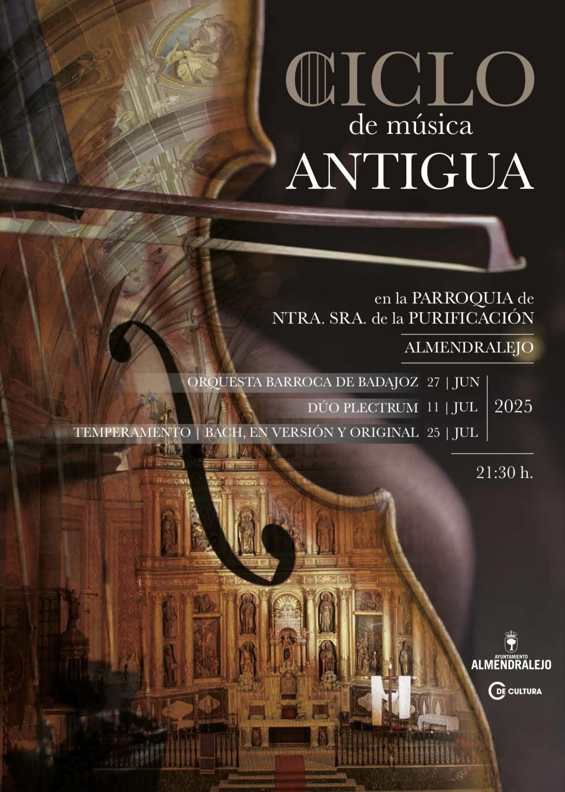 La Concejalía de Cultura de Almendralejo invita a vecinos y visitantes a sumergirse en los sonidos del pasado con una nueva edición del Ciclo de Música Histórica, que tendrá lugar en un escenario singular: la Parroquia de Nuestra Señora de la Purificación. El evento, que se celebra en dos jornadas, arrancará este viernes, 11 de julio, a las 21:30 horas, con la actuación del Dúo Plectrum.