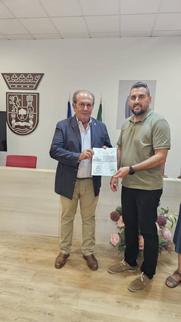 El acto de firma contó con la presencia del alcalde Miguel Ángel Araya, el presidente de Caja Rural de Extremadura Urbano Caballo Arroyo, representantes de la hermandad y de la institución local.