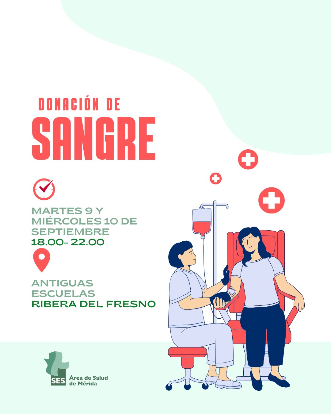 El Banco de Sangre de Extremadura ha hecho un llamamiento urgente a la ciudadanía ante la falta de reservas en sus bolsas. Para ello, el equipo de hematología se desplazará a Ribera del Fresno durante los días 9 y 10 de septiembre, en horario de 18:00 a 22:00 horas, donde instalará un punto de extracción en las antiguas escuelas de La Molineta.