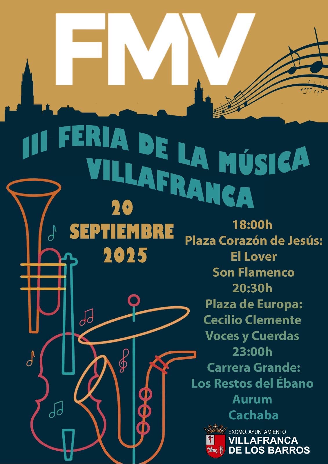 La Feria de la Música, que ha alcanzado en 2025 su tercera edición, ha cambiado de mes, de estructura y de ubicación. El evento se celebrará el próximo sábado 20 de septiembre y tendrá como escenario las calles y plazas de Villafranca.