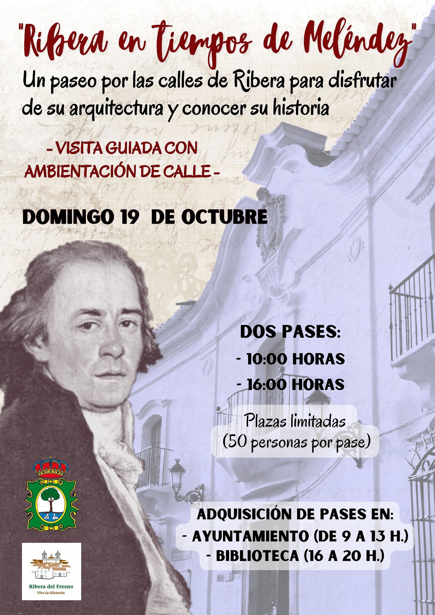 El Ayuntamiento de Ribera ha presentado la actividad cultural “Ribera en tiempos de Meléndez”, una visita guiada muy especial que permitirá a vecinos y visitantes sumergirse en la historia local y en el patrimonio arquitectónico de las casas solariegas de la localidad. La cita tendrá lugar el domingo 19 de octubre, con dos turnos disponibles: a las 10:00 horas y a las 16:00 horas, partiendo desde la Plaza del Ayuntamiento.