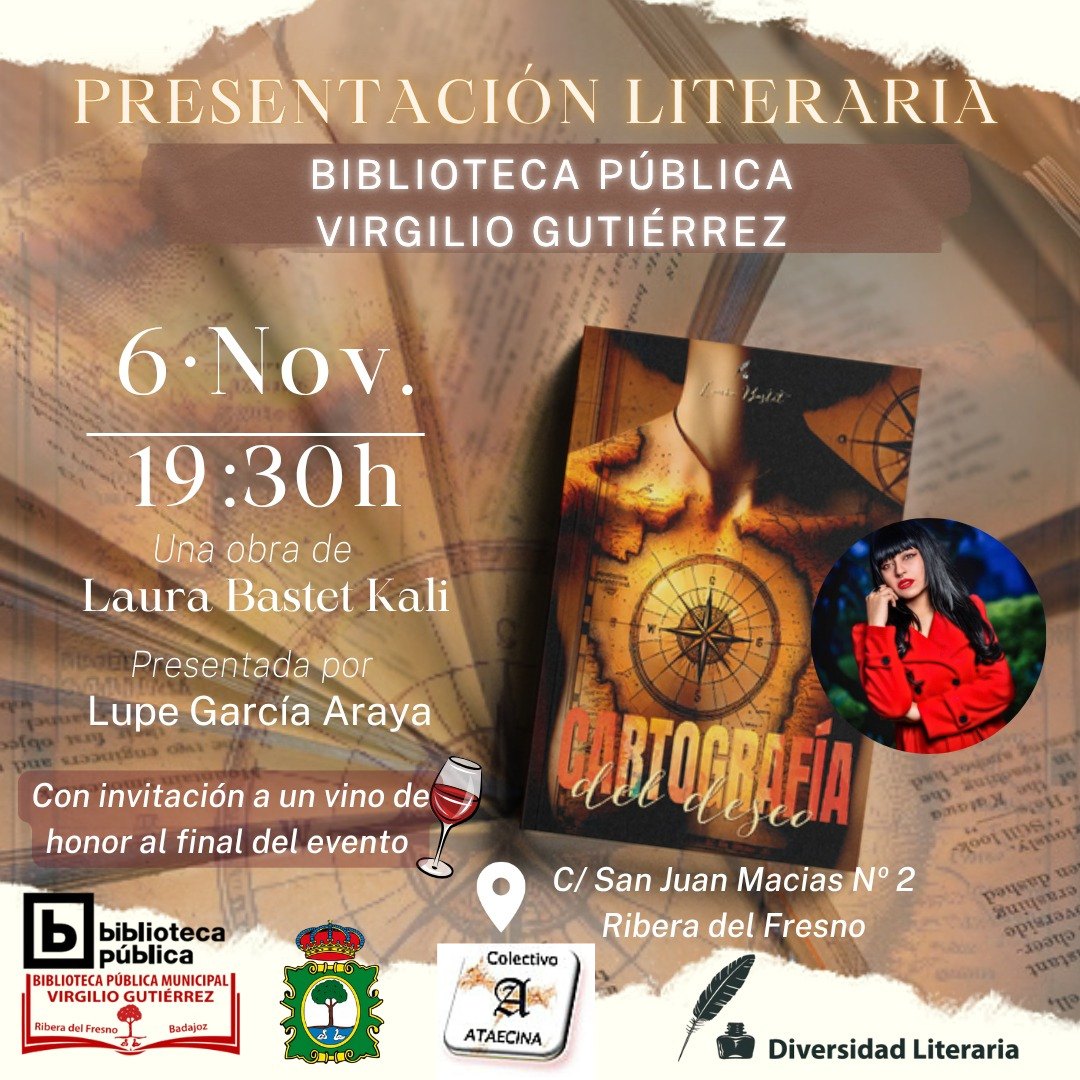 El próximo jueves 6 de noviembre, a las 19:30 horas, la Biblioteca Pública “Virgilio Gutiérrez” acogerá la presentación de la obra Cartografía del deseo, de la escritora y activista Laura Bastet Kali, publicada por la editorial Diversidad Literaria.