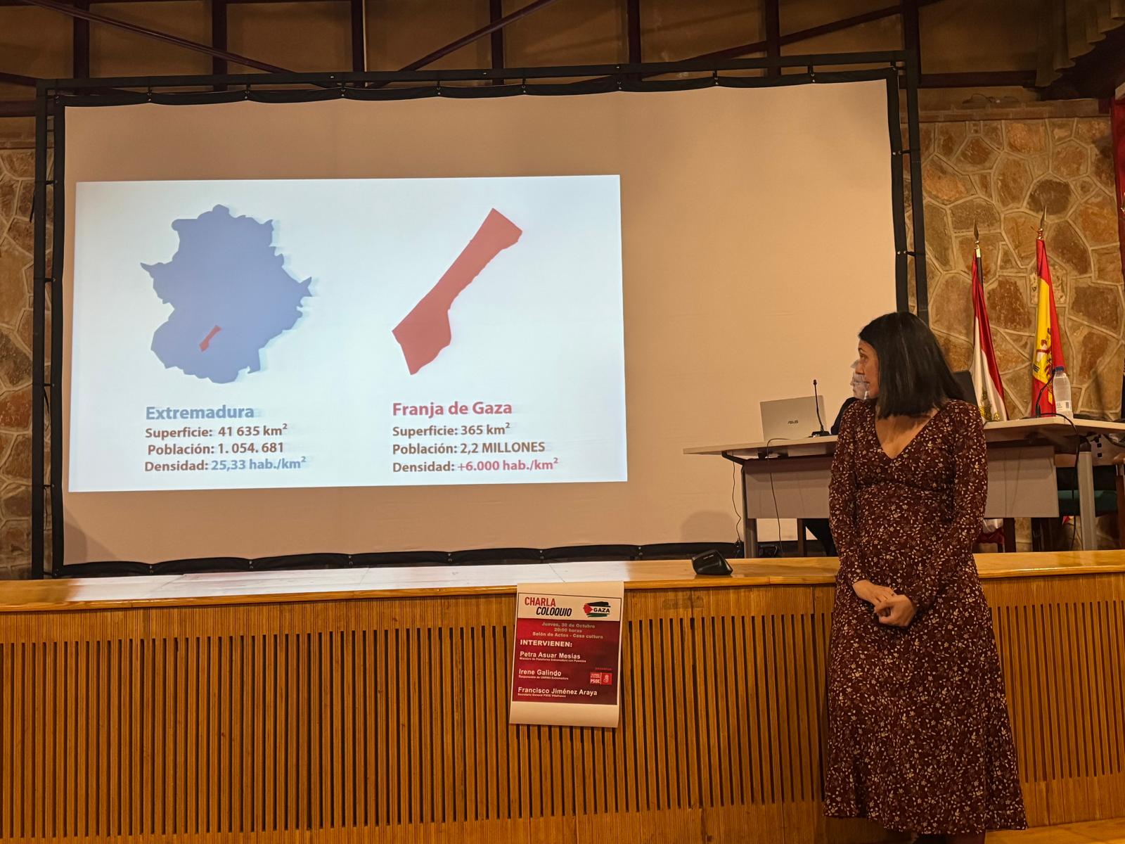 Para ilustrarlo, ha proyectado una imagen en la que se comparaba el territorio gazatí con Villafranca de los Barros, que cuenta con una superficie de 104 kilómetros cuadrados y una densidad de apenas 118 habitantes por kilómetro cuadrado.
