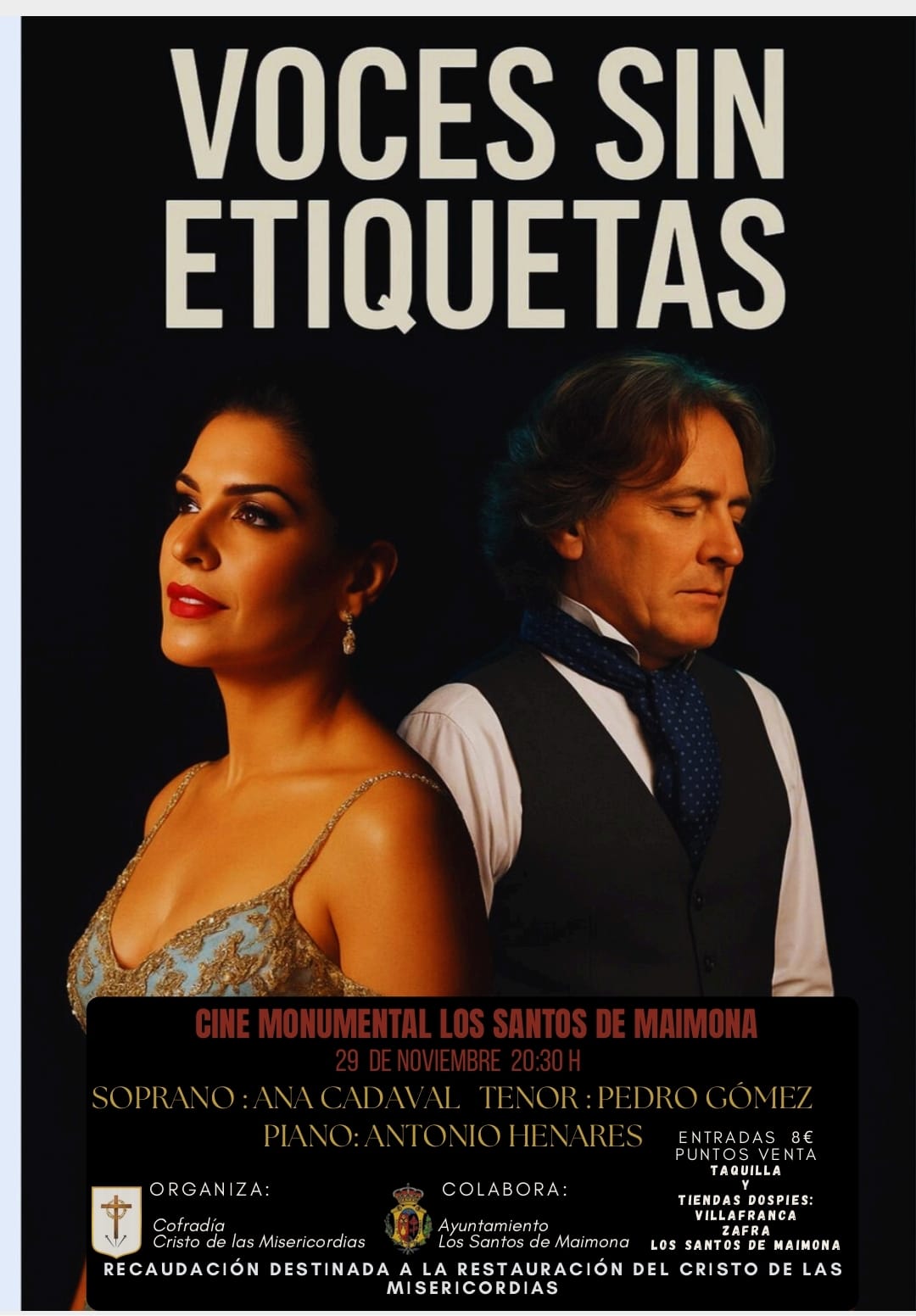 Se trata del espectáculo ‘Voces sin etiquetas’, que estrenan en la localidad la soprano Ana Cadaval y el tenor Pedro Gómez, que unen sus voces al piano de Antonio Henares.