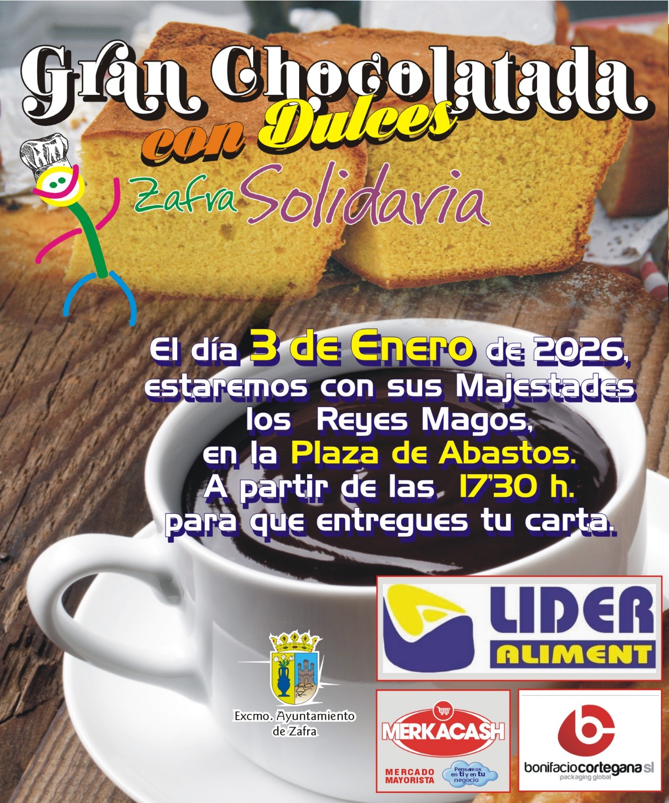 Durante el desarrollo de la actividad se celebrará también una gran chocolatada con dulces solidarios a beneficio de Zafra Solidaria, una iniciativa que permitirá a los asistentes colaborar con fines sociales mientras comparten uno de los momentos más esperados de la Navidad.