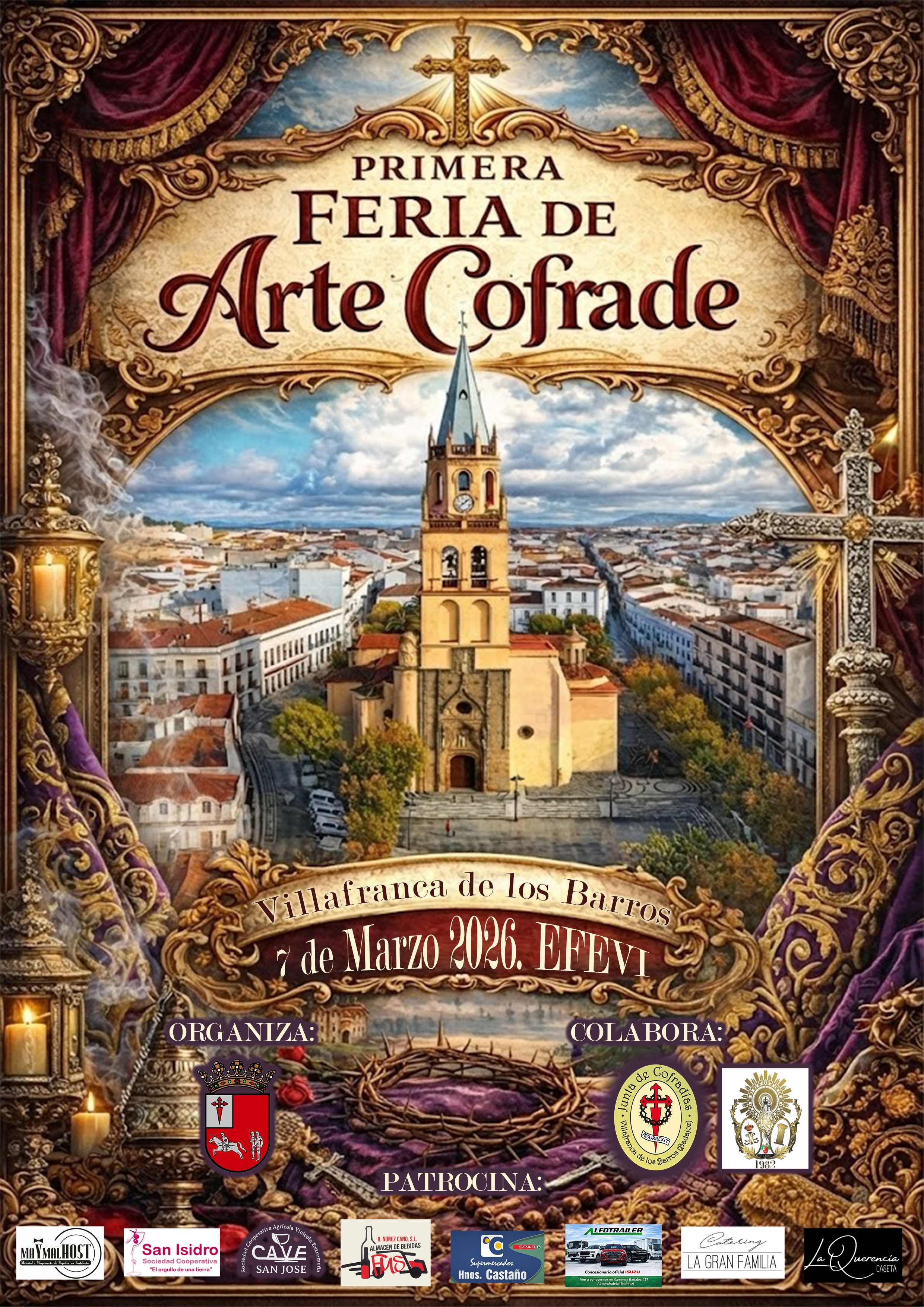 Villafranca de los Barros acogerá el próximo 7 de marzo de 2026 la I Feria de Arte Cofrade, un evento de ámbito regional que se celebrará en el EFEVI y que nace con vocación de continuidad, con el objetivo de convertir a la localidad en un punto de encuentro del mundo cofrade.