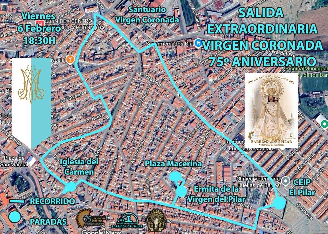 La Virgen Coronada protagonizará una salida extraordinaria por las calles del barrio del Pilar el próximo viernes 6 de febrero, con motivo del 75 aniversario de su coronación, una efeméride que se conmemorará a lo largo de 2026 con diversas actividades religiosas y culturales.
